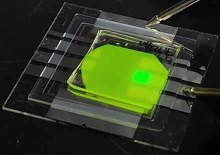 In 2022, we published a paper in Nature on an electroluminescence device fabricated using an in-situ core-shell strategy, which achieved record external quantum efficiency (28.9%), remarkable brightness of ~473,000 cd/m²), and long device lifetime of T50~31,000 hours —an almost thousand-fold enhancement over previous lifetime record in the field. Currently, we are also obtaining impressive results in our research on color conversion layer applications, demonstrating extreme stability with a lifetime (T90 > 15,000 hours, testing ongoing) under direct blue light illumination. Additionally, we are achieving commercially-viable results on the par with inorganic QD performance under harsh conditions, such as high temperatures (≥ 60°C) and high humidity (≥ 90% RH), and high Flux (≥100 mW/cm2), while maintaining its high optical properties (PLQY ≥ 90%). With further improvement in pixel resolution, our product is ready for commercialization in small displays, including premium AR/VR, cell phone, smart watch and more.